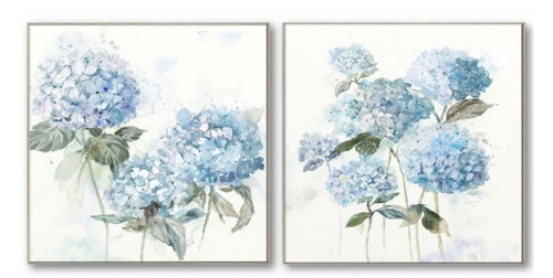 Hamptons Blue Hydrangea Canvas Wall Art Set of 2