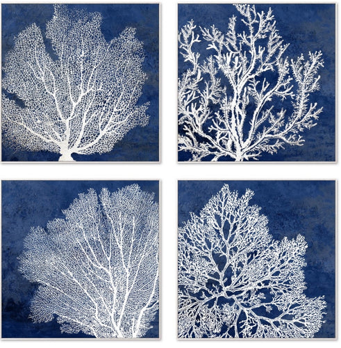 Navy Blue Hamptons Coral Wall Art/Canvas set of 4