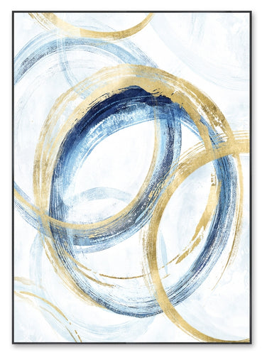 Gold Blue Abstract Wall Art/Canvas 140x100 cm